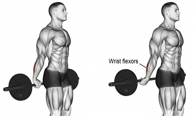 3. Standing Palms-Up Barbell Behind The Back Wrist Curl