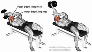 - Do 3 sets of lying dumbbell triceps extensions, with the first two having 15 reps each and the last one 20 reps.