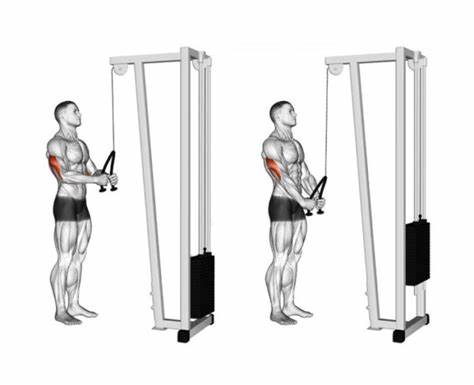 - Do 2 sets of low cable triceps extensions with 12 reps each, as well as a final set of 15 reps.