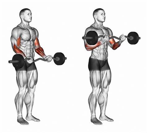 - Allowing only the forearms to move, lift the barbell in the upward direction. Do not move your upper arms at all.